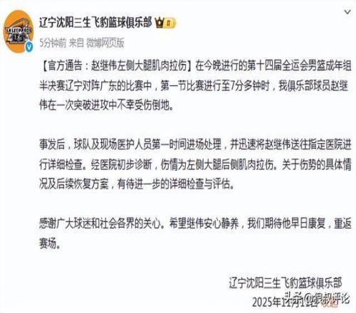 遼寧男籃官方:趙繼偉診斷左側大腿肌肉拉傷后續(xù)恢復需詳細檢查