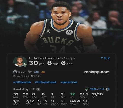 本賽季至今,30歲的字母哥,場均狂轟33.4分11.9板6.2助1.3帽,投籃命中率高達62.9%,場均以50%命中率扔進0.8記三分球,希臘怪獸仍然在進化,變得更加不可阻擋。
