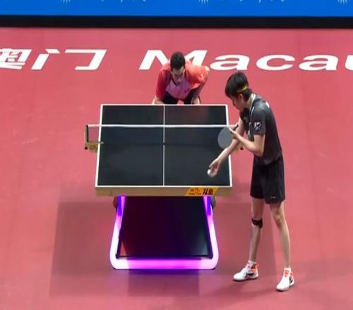 第六局比賽,王楚欽又取得5比1領(lǐng)先,繼而打到8比3領(lǐng)先。這時候,黃鎮(zhèn)廷加快了進攻,連得4分追到了7比8。王楚欽叫了暫停。暫?;貋恚S鎮(zhèn)廷繼續(xù)搶攻得分,扳平了比分。王楚欽出現(xiàn)失誤,黃鎮(zhèn)廷實現(xiàn)了反超。隨后一球,黃鎮(zhèn)廷又主動進攻拿到了局點。