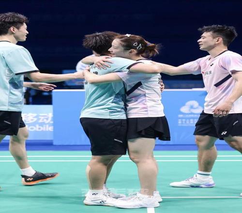 另一張照片,是黃東萍、歐烜屹與鄭思維、黃雅瓊的合影。他們聯(lián)手奉獻(xiàn)過無數(shù)場混雙賽場的“神仙對決”,他們寫就著國羽混雙歷史的輝煌成就。